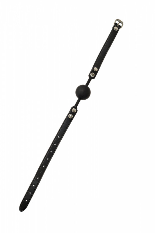 Силиконовый черный шарик на черном ремешке из экокожи. Ремешок регулируемый. Застегивается на затылке